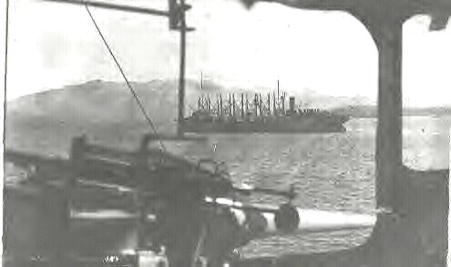 USS Proteus (Fuel Ship #9). In the foreground is one of the Amphitrite Class monitors in the process of being scrapped, it could be either Terror or Miantonomah. Just beyond her bow is a torpedo boat. Photo by International Film Services. Uploaded to Wikimedia, 31 May 2016, by Harley Flowers |