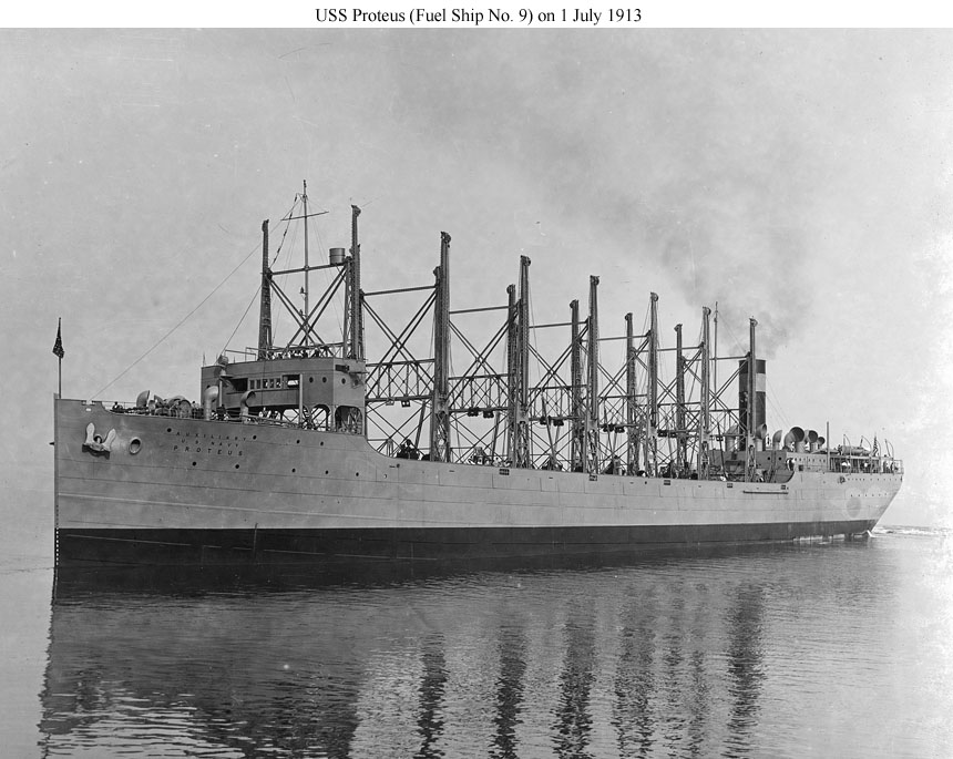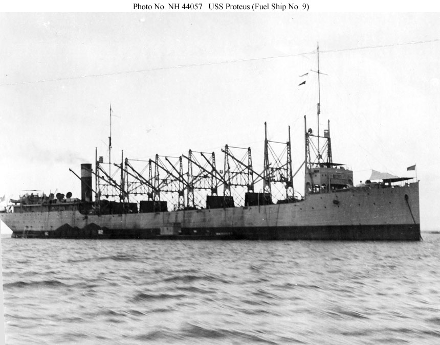 415k | USS Proteus (Fuel Ship #9) date and location unknown. US Navy photo from the collections of the US Navy Memorial. |