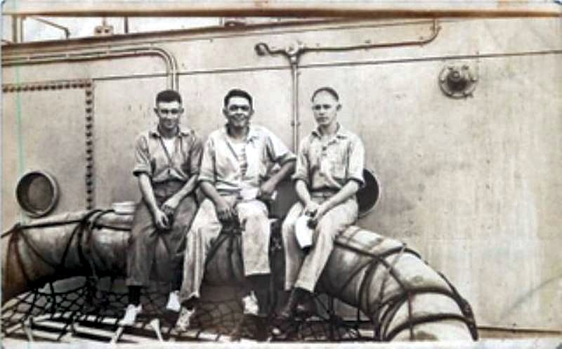 66k | Three USS Proteus (AC-9) crew members siting on a life raft, circa 1920s. | Tommy Trampp | |
