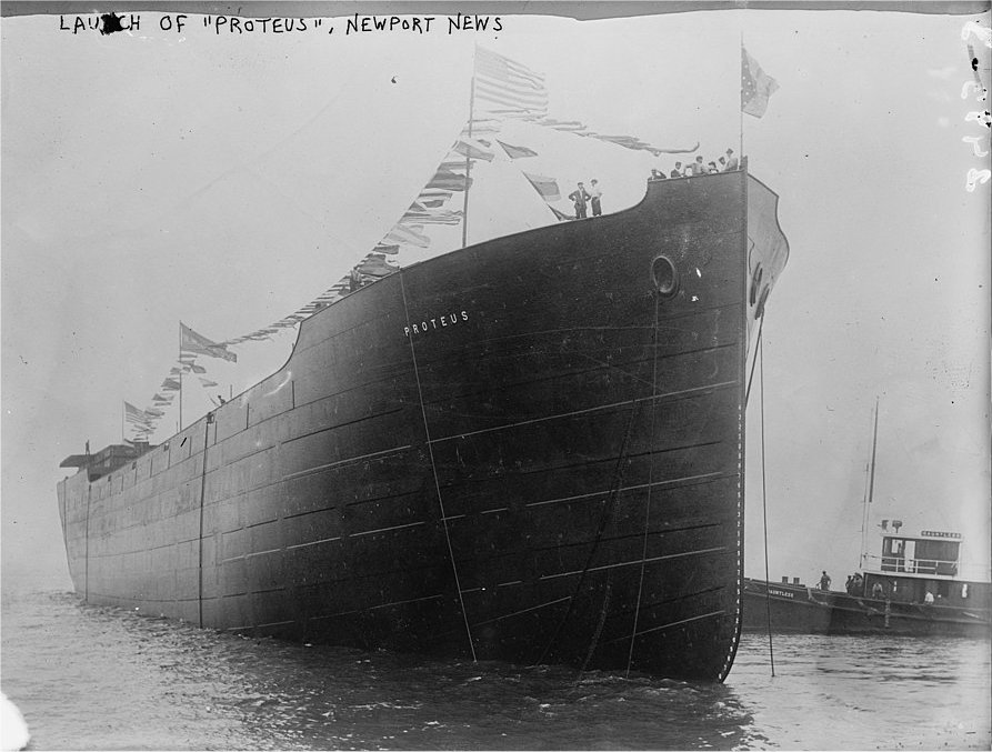 101k | Launching of Proteus (Fuel Ship #9) at Newport News Shipbuilding and Drydock Co., Newport News, VA.