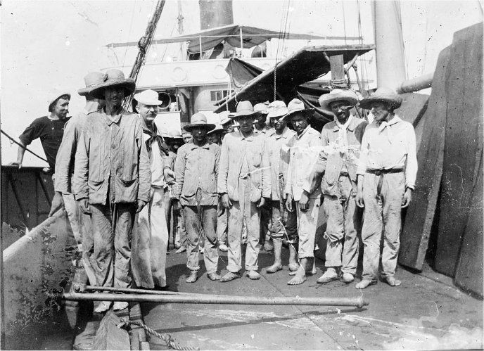 92k | Spanish prisoners on board USS Abarenda at Guantanamo, June 14, 1898.