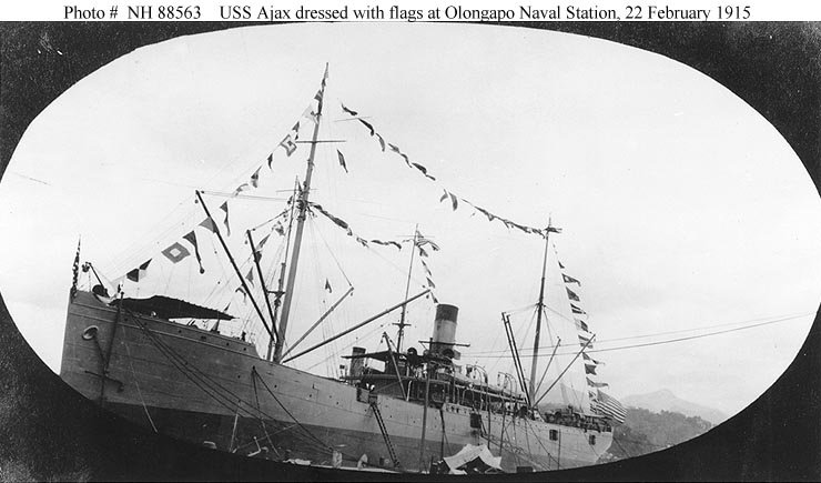 (Collier #14) at Olongapo Naval Station, Philippine Islands, 22 February 1915. The ships were dressed with flags in honor of George Washington's birthday.