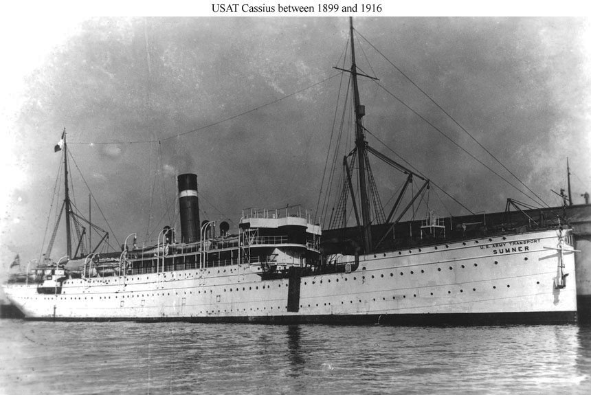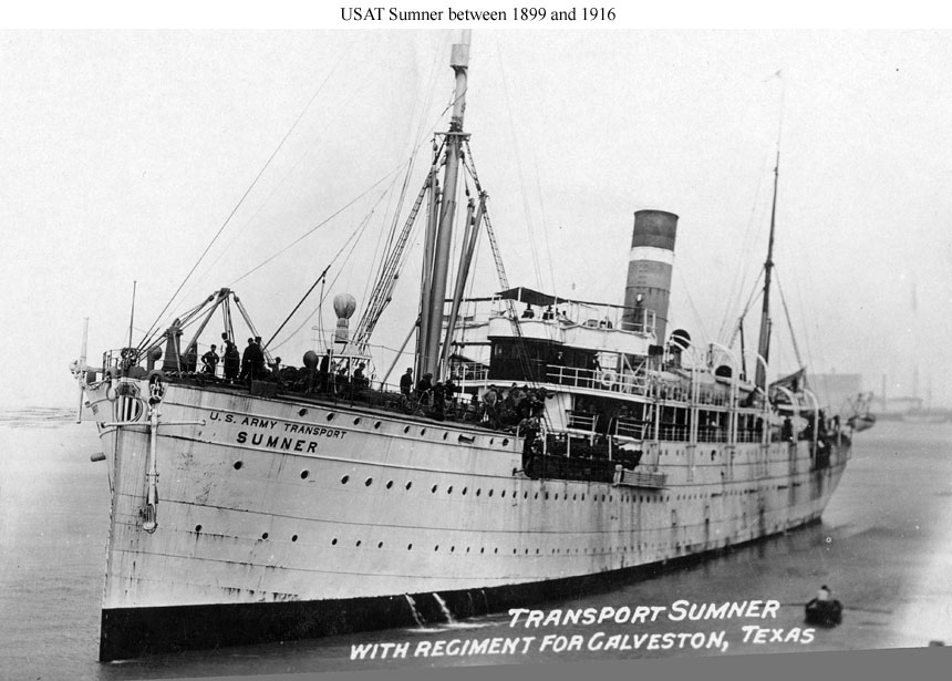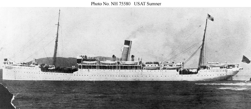 USAT Sumner arriving in port, location unknown, circa 1899 to 1916. US Navy photo courtesy Shipscribe.com |