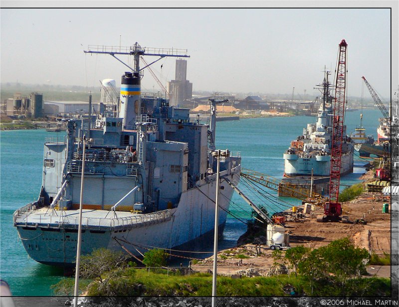 136k | Ex-Santa Barbara (T-AE-28) being scrapped at ESCO, Brownsville, TX., 15 November 2006. Forward of Santa Barbara are ex-Des Moines (CA-134) also being scrapped. | Photo by Michael Martin, Brownsville, TX. | |