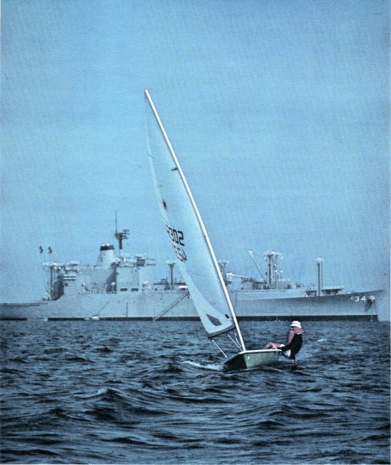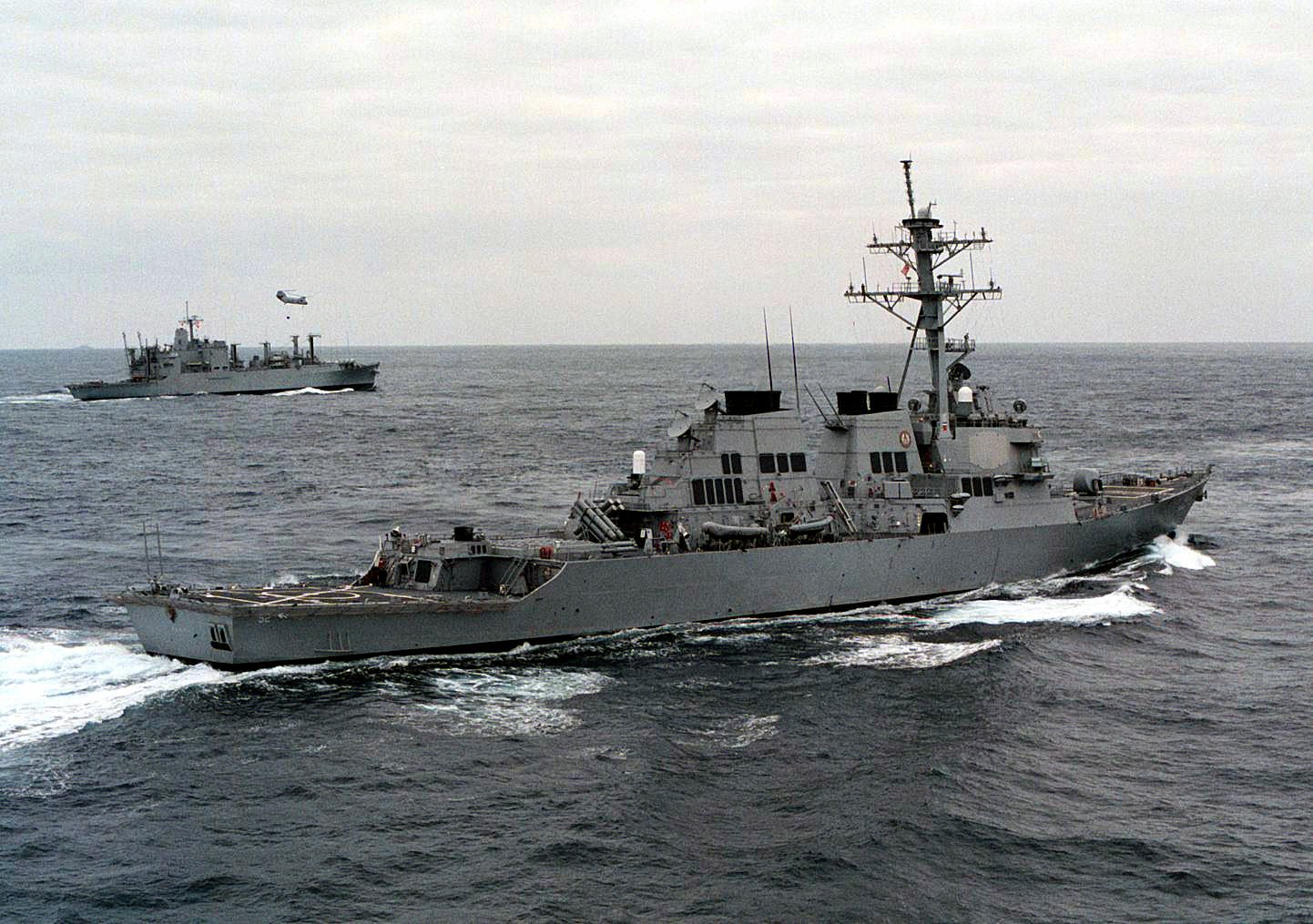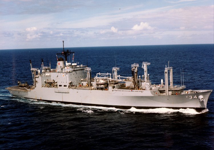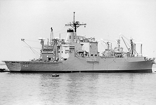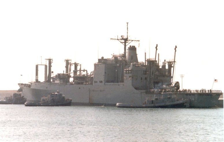 USS Caloosahatchee (AO-98) are in the background, 12 March 1988. US Navy photo. |