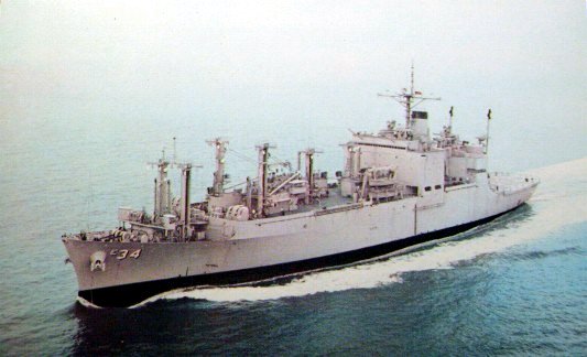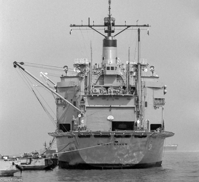 370k | USS Mount Baker (AE-34) under way, circa 1975, location unknown. Photo ©Atlantic Fleet Sales, Norfolk, VA. Available on line at Atlantic Fleet Sales web site |