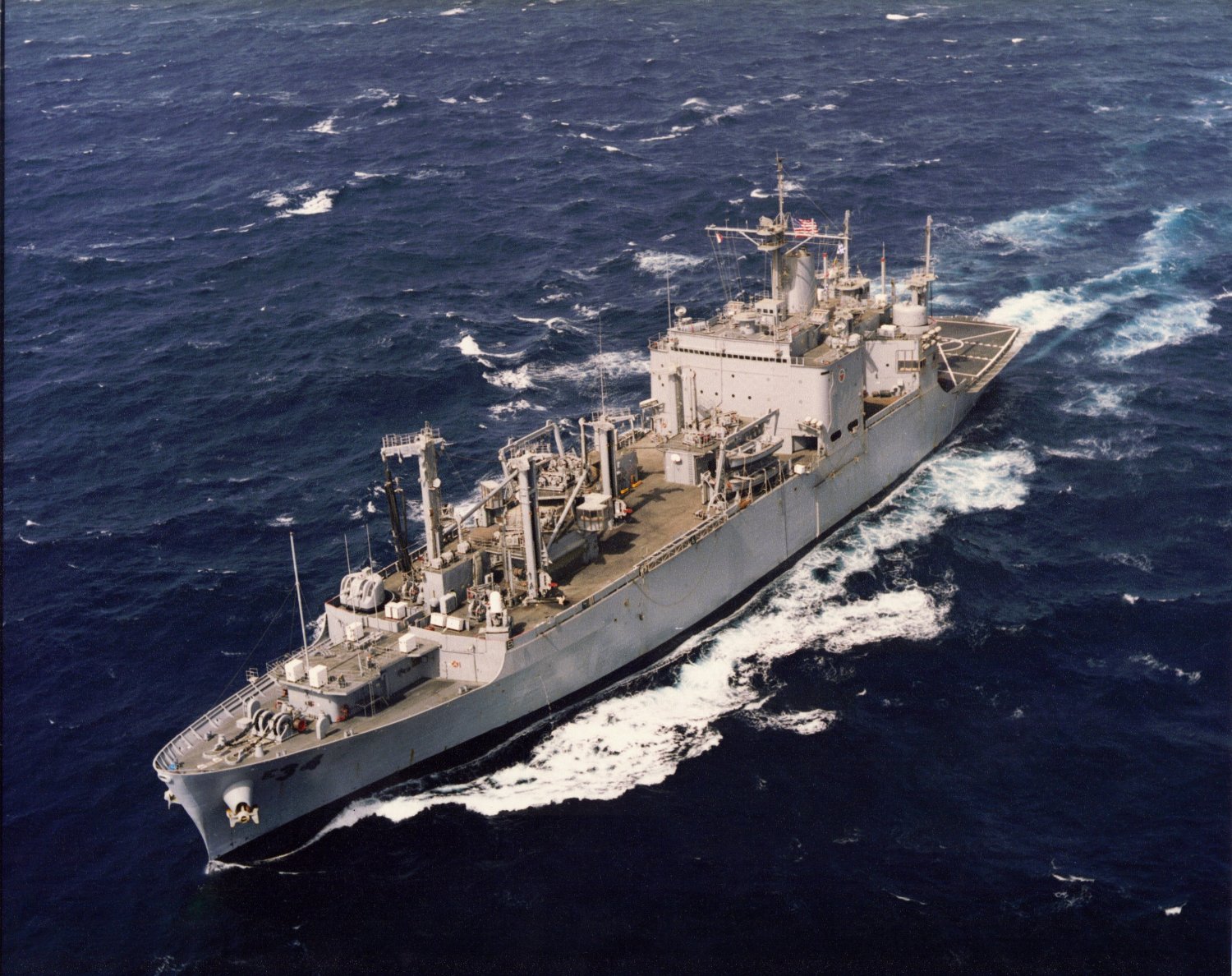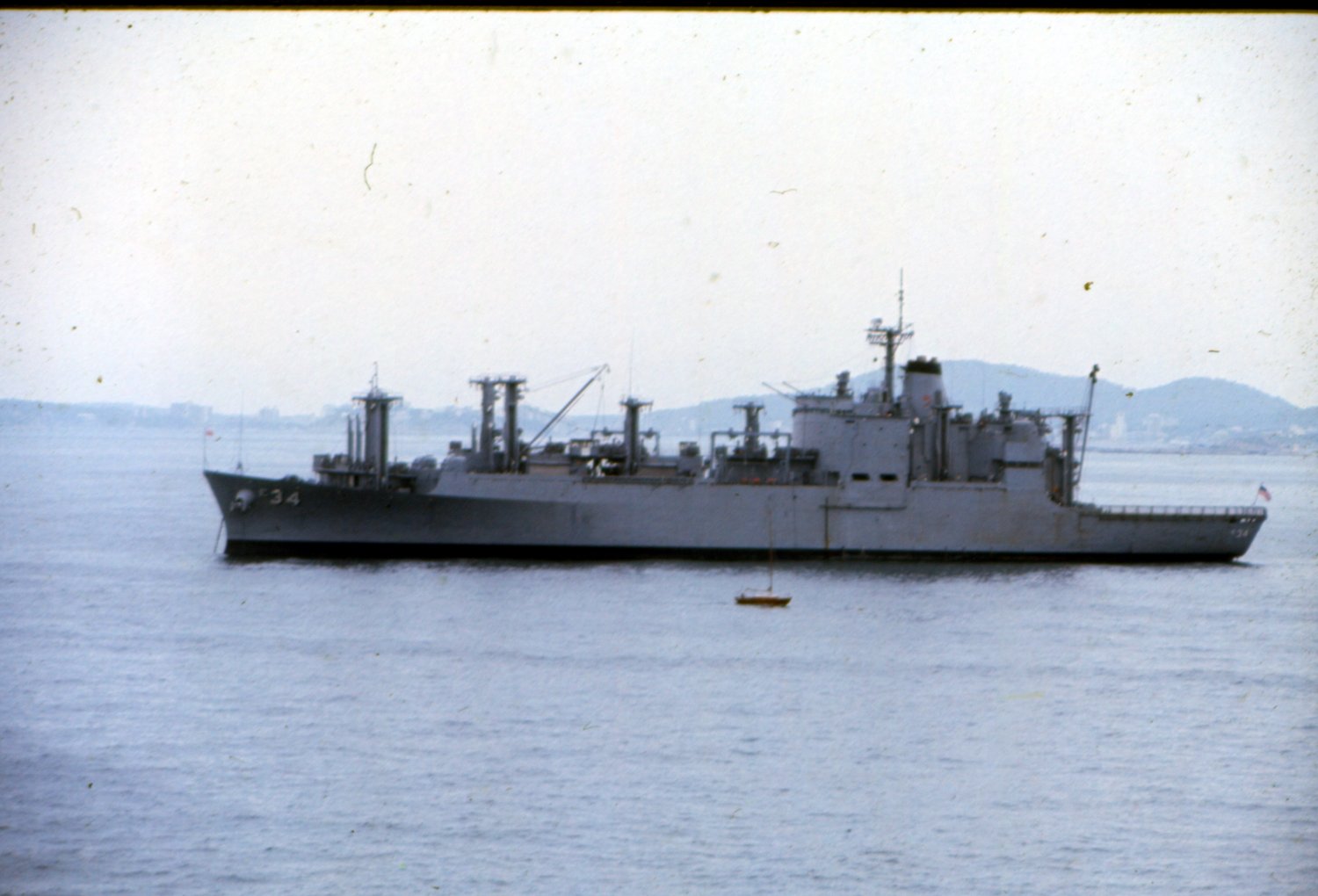 74k | USS Mount Baker (AE-34) during a training exercise with USS Nimitz (CVN-68) off Guantanamo Bay, Cuba, circa 1975-1977. US Navy photo |