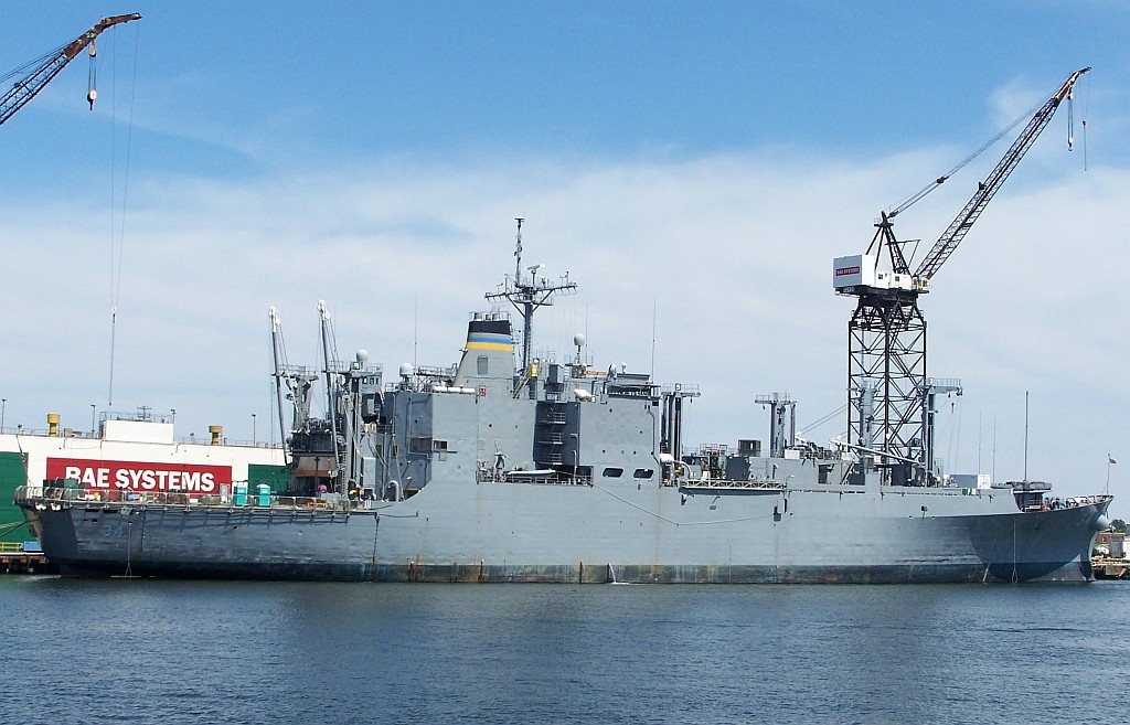 175k | USNS Mount Baker (T-AE-34) moored pierside at BAE Systems Ship Repair Yard, Norfolk, VA., 12 July 2008. Photo by William Grimes |