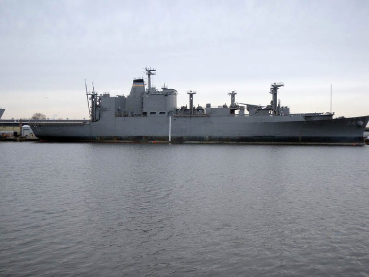 54k | Ex-USNS Mount Baker (T-AE-34) moored pierside at the Naval Inactive Ship Maintenance Facility, Philadelphia, PA. while being prepared as a target, 10 December 2010. | Ron Reeves | |