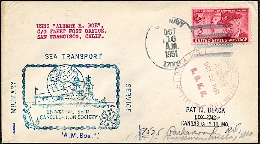 NS-pc09170601 U.S.N.S. Albert M. Boe Dated October 16 1951 Submitted by John Spivey. |