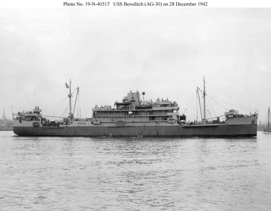 USS Bowditch (AG-4) 1943 International Radio Call Sign: Nan - Charlie - Fox - Jig NCFJ |