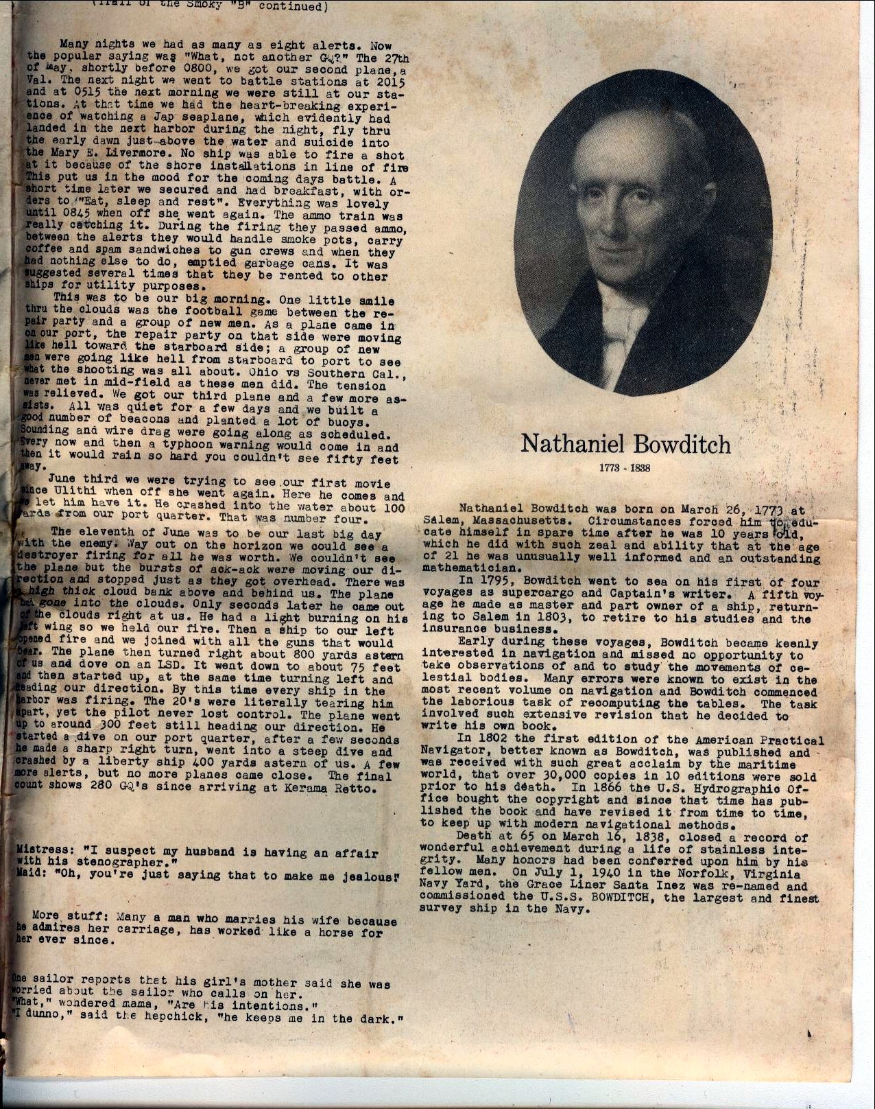 ![]() "Nathaniel Bowditch" | ![]() | ![]() "Stateside Supplement" | ![]() Back Cover |