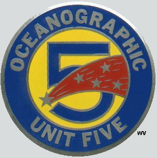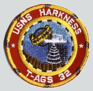 26k | Logo for Naval Oceanographic Unit 5 embarked in USNS Harkness. The large star represented the Harkness while the four smaller stars represented the four HSLs. The design was created by LCDR Pigeon, then CO of the unit, circa 1972-73. | Photo courtesy Bill Valashinas. Caption courtesy LI1 David Saunders USNS Harkness | |