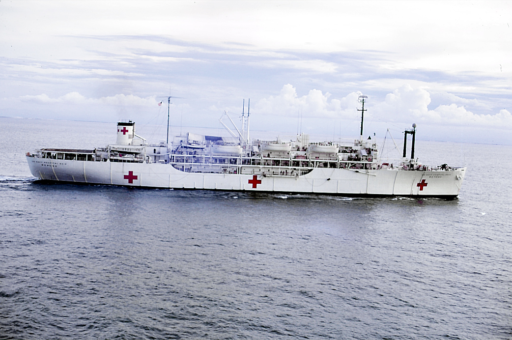 74k | USS Repose (AH-16) underway off the coast of Vietnam, July 1966. US Navy photo from "All Hands" magazine, July 1966 |