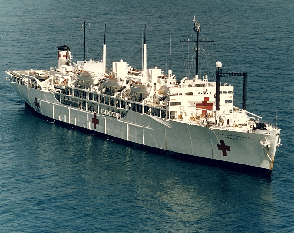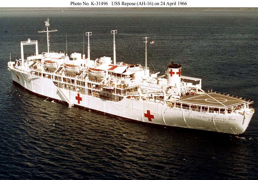 (USS Tranquility. Repose was one of six 15,0000 ton US Navy hospital ships to be converted from Maritime Commission C-4