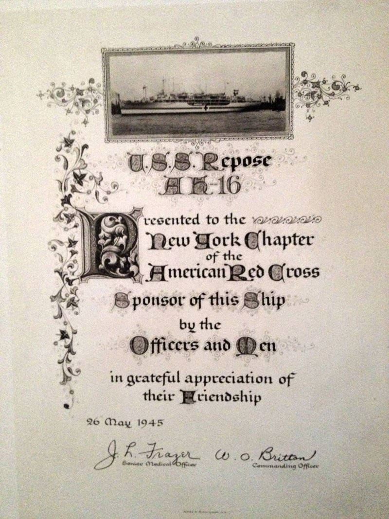 | USS Repose Memorabilia Contributed by Michael Kleaveland |
