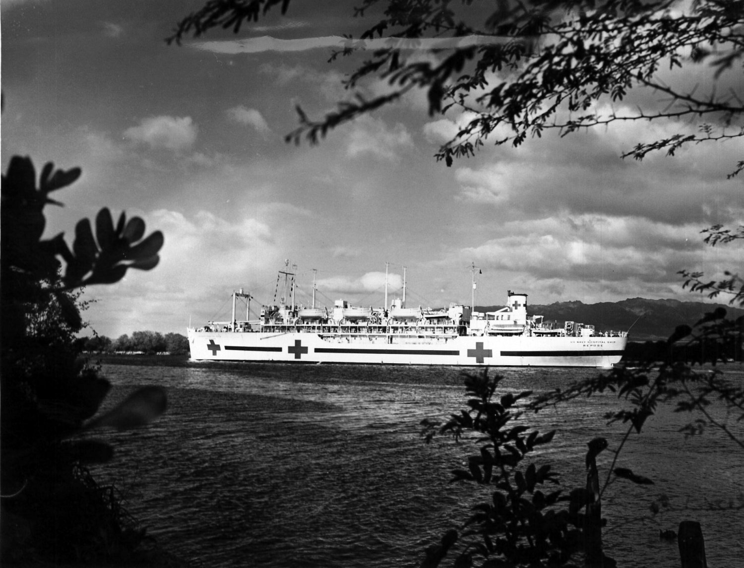 252k | USS Repose (AH-16) "Queen of the Orient" underway at Pearl Harbor, circa 1952. Courtesy of the National Museum of Health and Medicine |