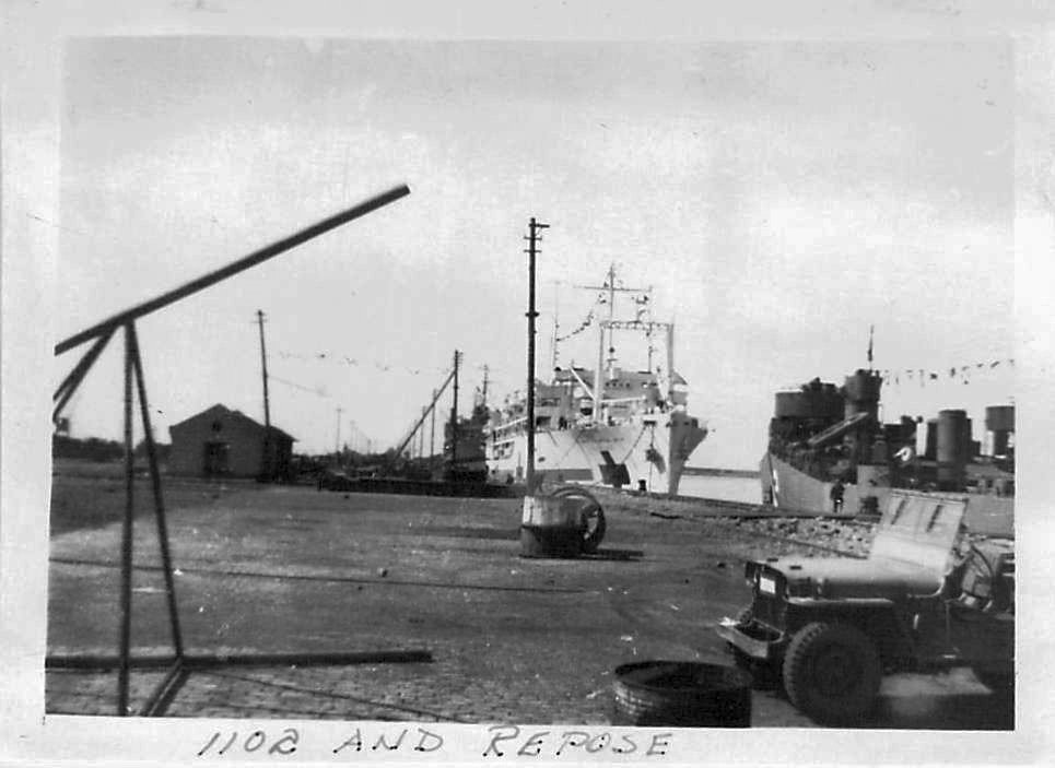 97k | USS Repose (AH-16) moored pierside at either Shanghai or Tsingtao, China in October 1946. | Paul Webb for his father ENS. Ronald H. Webb, USNR USS LST-1102 | |