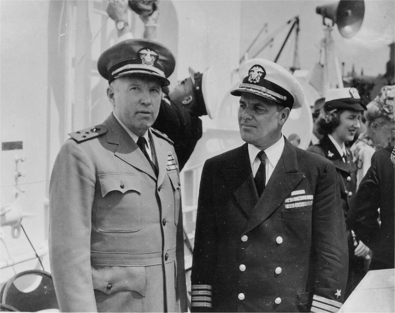 XO CDR deSobo USNR sets the watch as CAPT Britton looks on |