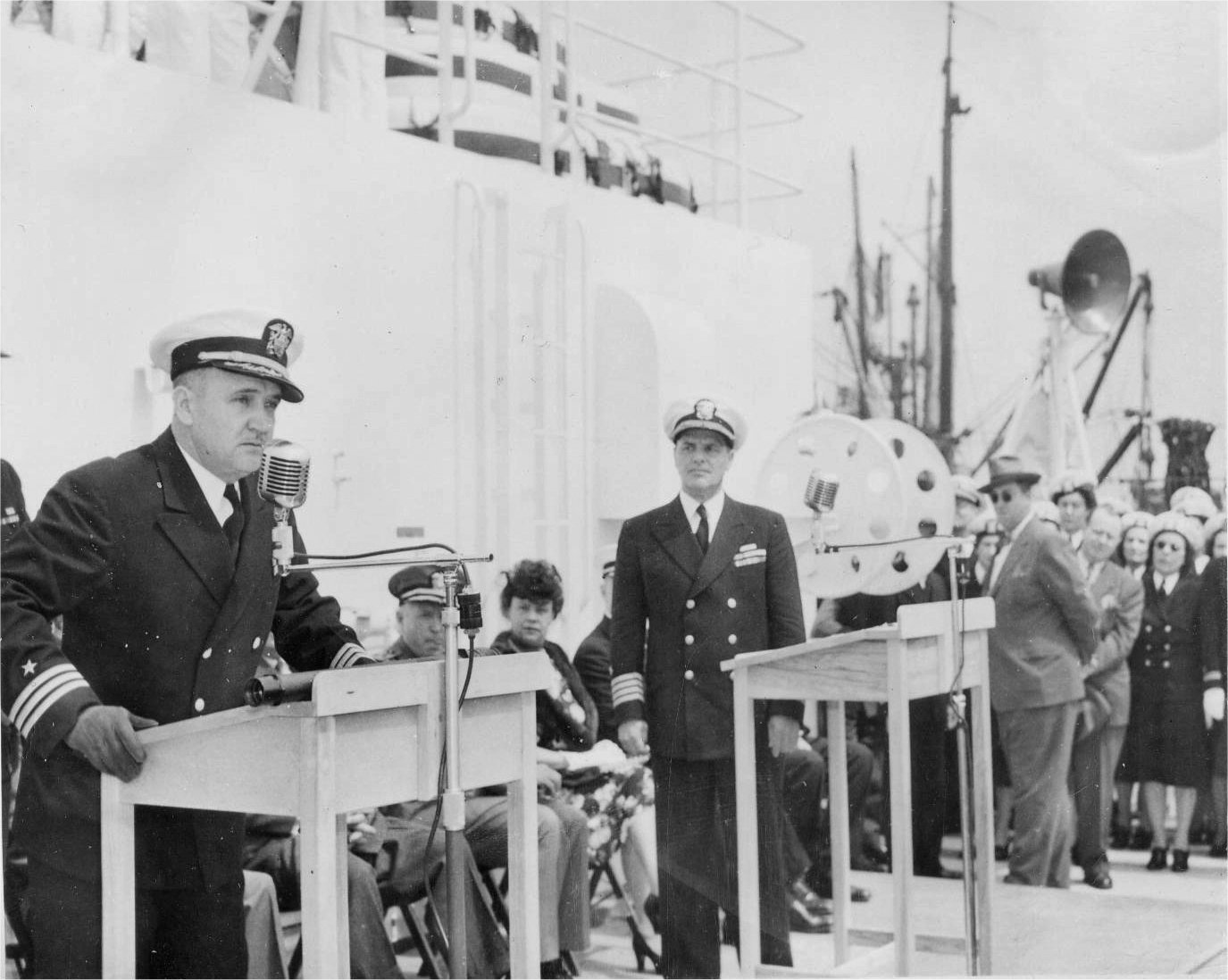 CO CAPT William O. Britton. VADM Ross McIntyre, and other VIPs |