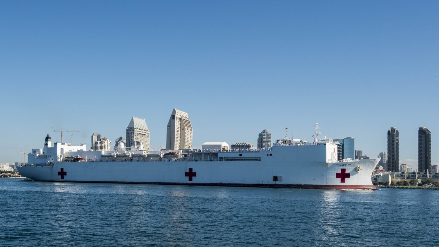 317k | USNS Mercy (T-AH-19) underway off San Diego, CA., date unknown.
