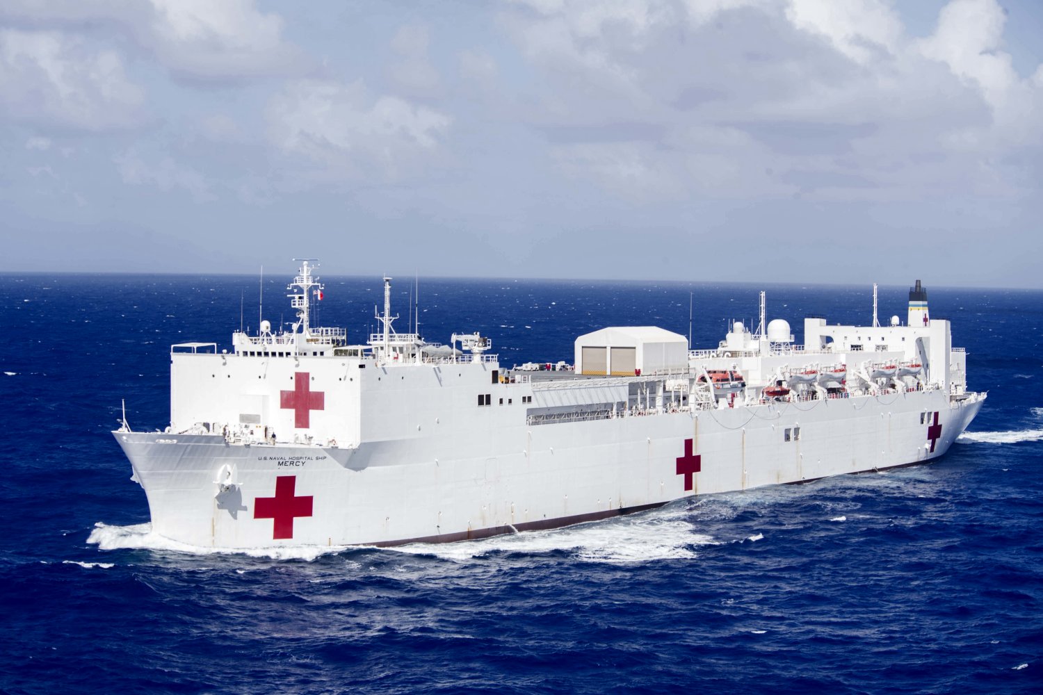 266k | USNS Mercy (T-AH 19) steams in the Pacific Ocean after completing Pacific Partnership 2016 in the Indo-Asia-Pacific region.