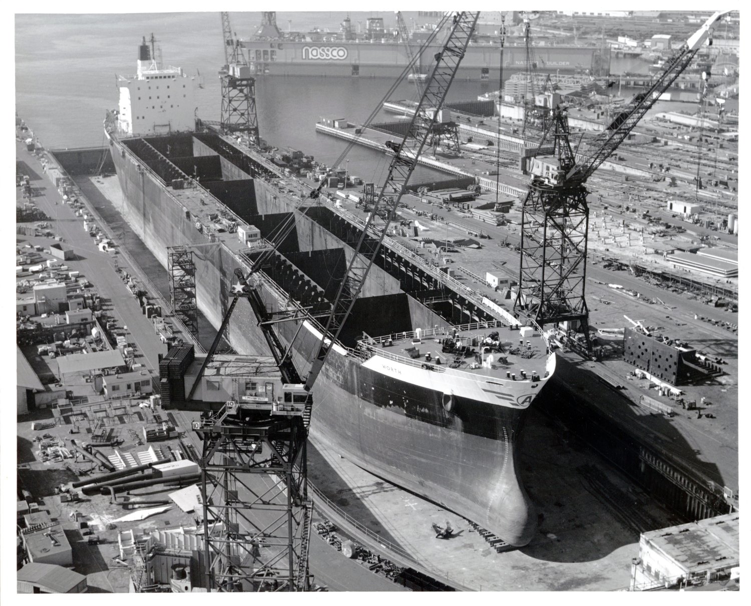 550k | Supertanker ST Worth entering the drydock at National Steel and Shipbuilding Co., San Diego, CA., 20 July 1984, for conversion to a hospital ship.