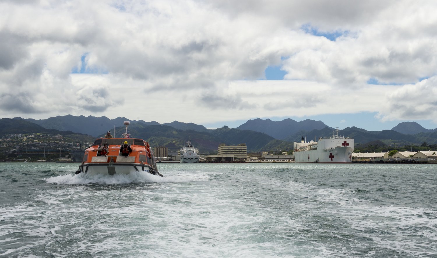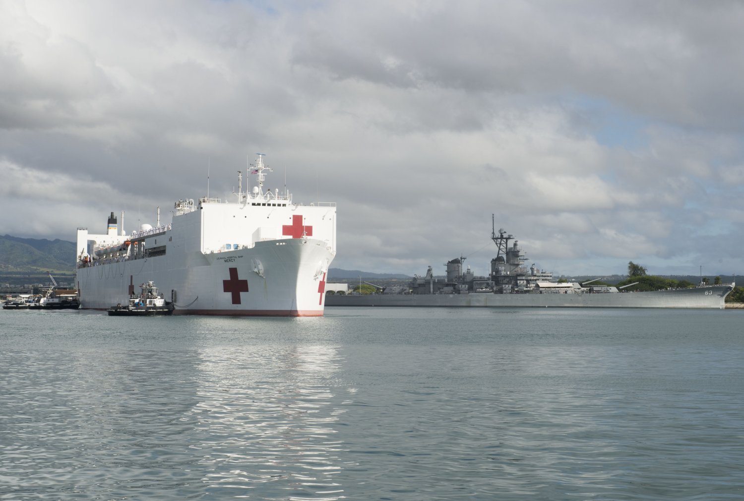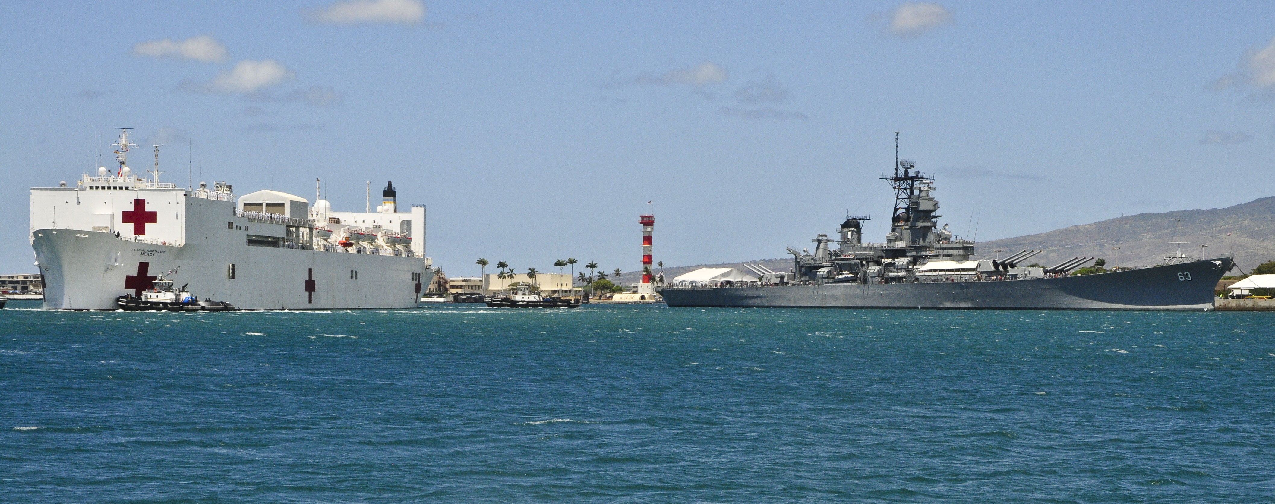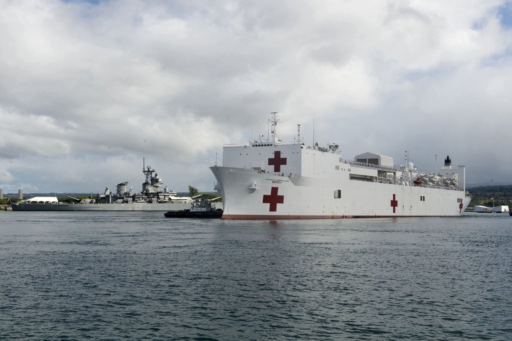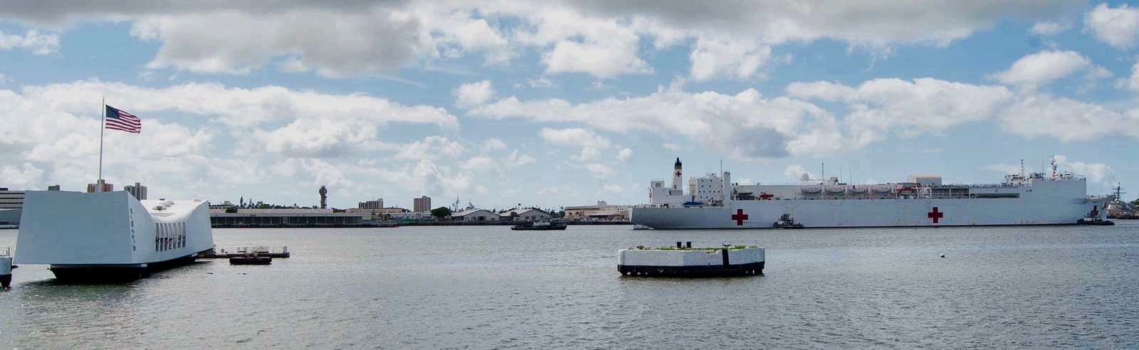 149k | USNS Mercy (T-AH 19) passes the USS Arizona Memorial as she arrives at Joint Base Pearl Harbor-Hickam after
