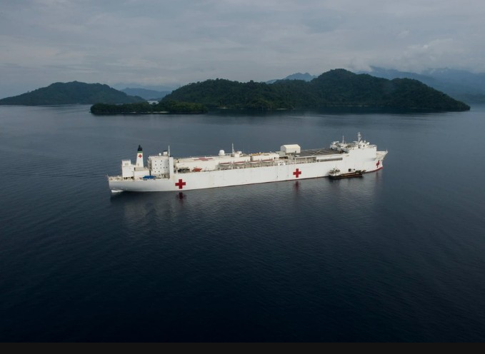 199k | USNS Mercy (T-AH 19) anchored off the coast of Bengkulu, Indonesia, in support of Pacific Partnership (PP) 2018. PP-18's