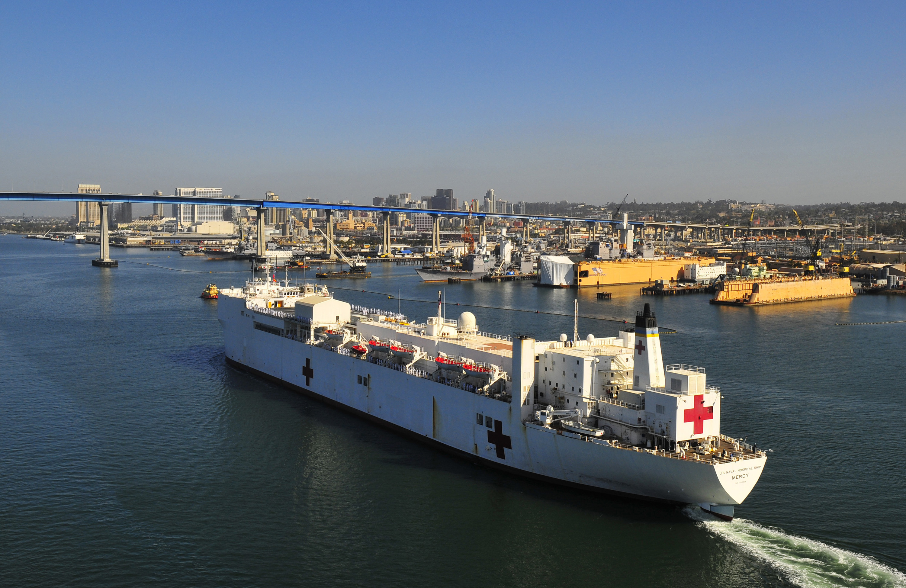 223k | USNS Mercy (T-AH 19) departs San Diego in support of Pacific Partnership 2016. Pacific Partnership is in its 11th iteration