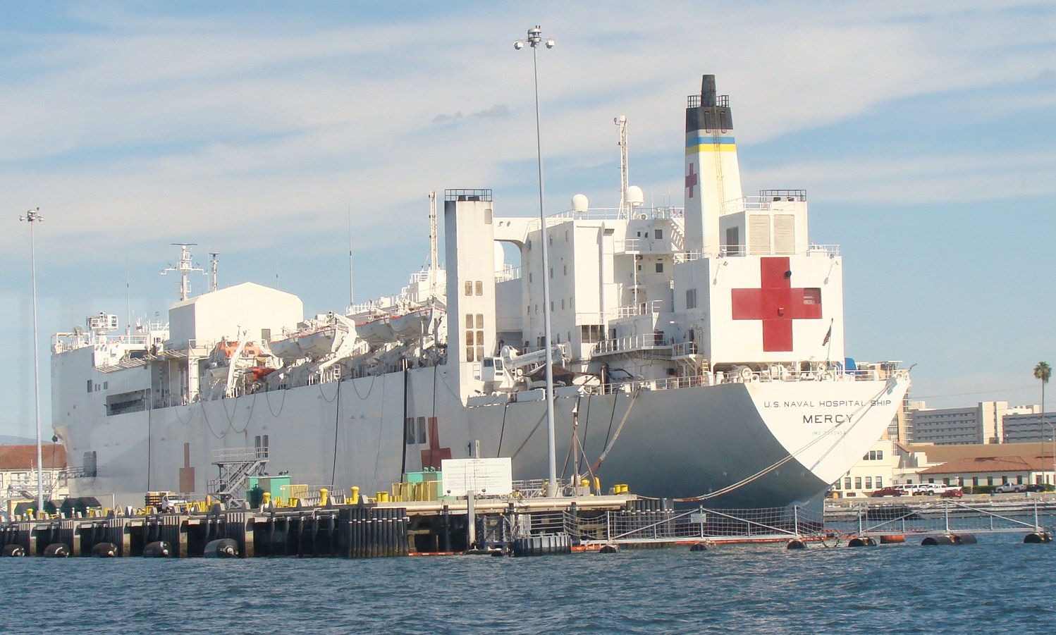 18k | USNS Mercy (T-AH-19) moored pierside, Point Loma, San Diego, CA., 2 July 1997 US Navy photo by PH2 Felix Garcia Jr |