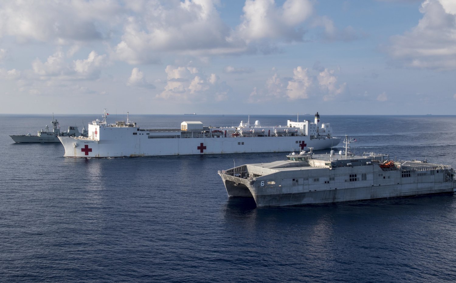 213k | USNS Mercy (T-AH 19), center, Her Majesty's Canadian Ship