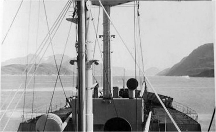 46k | View looking forward from the bridge area of USS Mayfield Victory (AK-232), date and location unknown. | Michael Rogers | |
