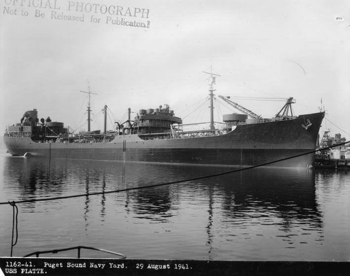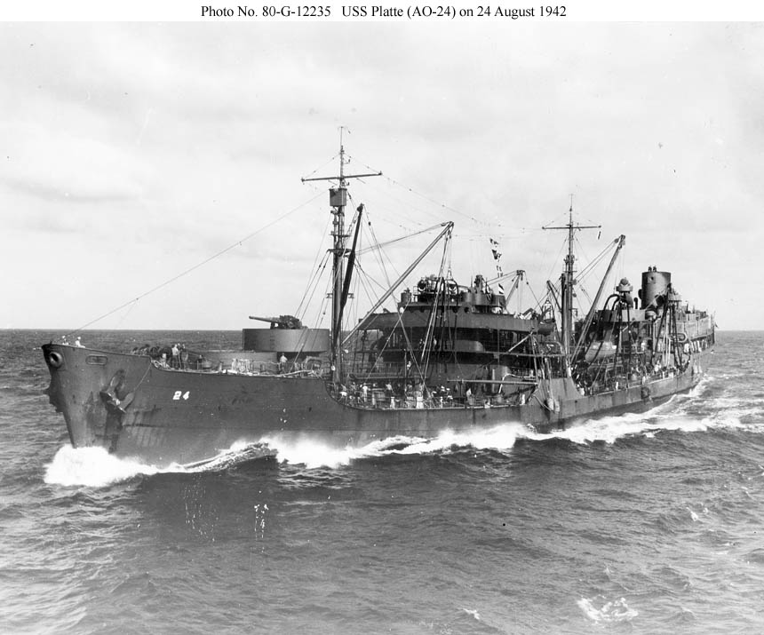 24 August 1942, to refuel the carrier during the Solomons campaign. Platte was fitted in 1941 with the same permanent gun implacements and temporary