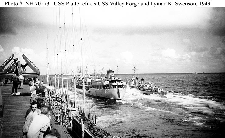 53k | USS Platte (AO-24) refueling an unidentified destroyer, date and location unknown. | ©Richard Leonhardt | |
