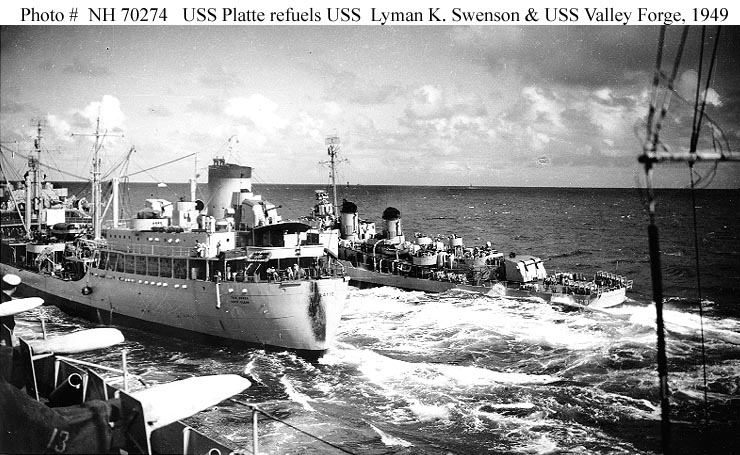 USS Valley Forge (CV-45) and the destroyer USS Lyman K. Swenson (DD-729),