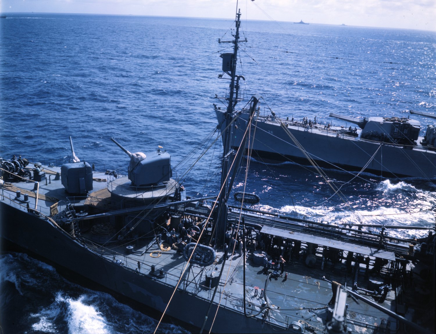 385k | USS Platte (AO-24) refueling USS Minneapolis (CA-36), 25 November 1943