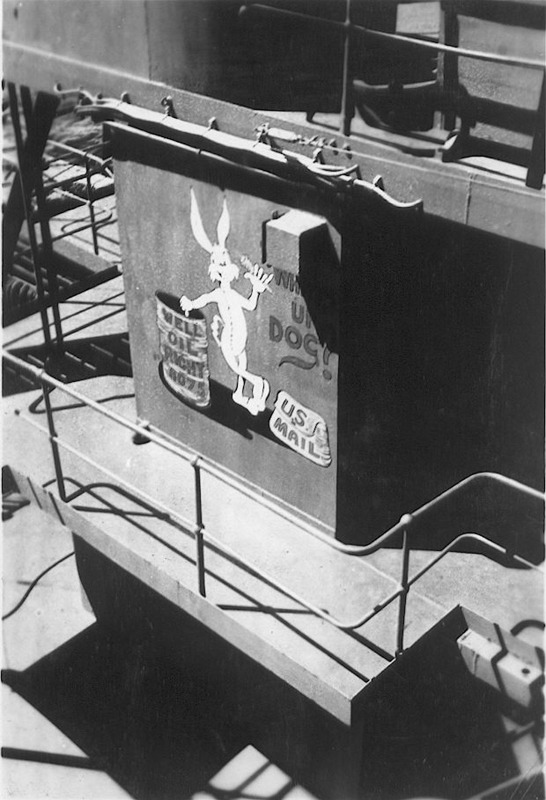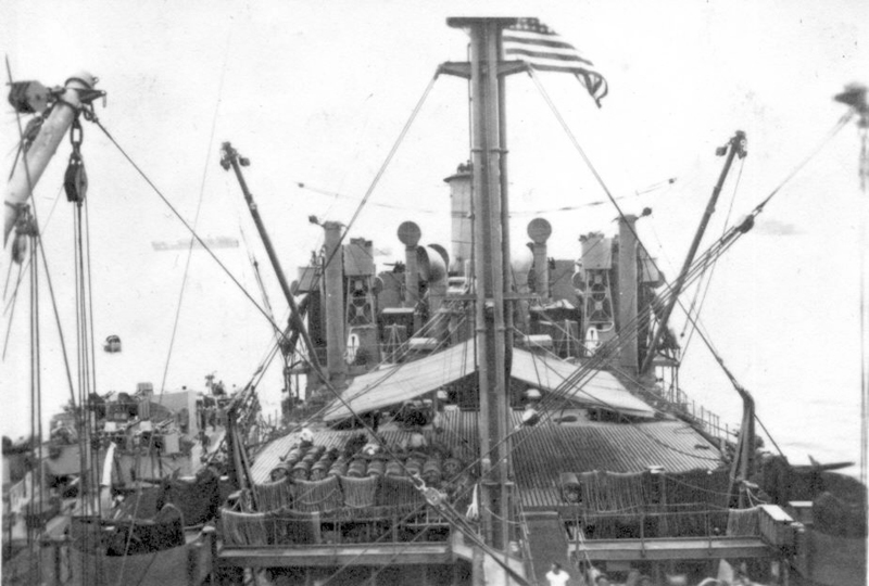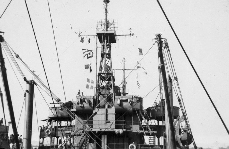 228k | View of USS Saugatuck (AO-75) the flag bag on the bridge, circa late-1945 early-1946, probably in San Francisco Bay. | John Chiquoine and Carmen Costa, courtesy Al DeSantis collection | |