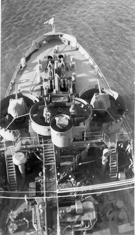 92k | View of USS Saugatuck (AO-75) of the foc'sle from the foremast, circa late-1945 early-1946, probably in San Francisco Bay. | John Chiquoine and Carmen Costa, courtesy Al DeSantis collection | |
