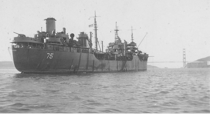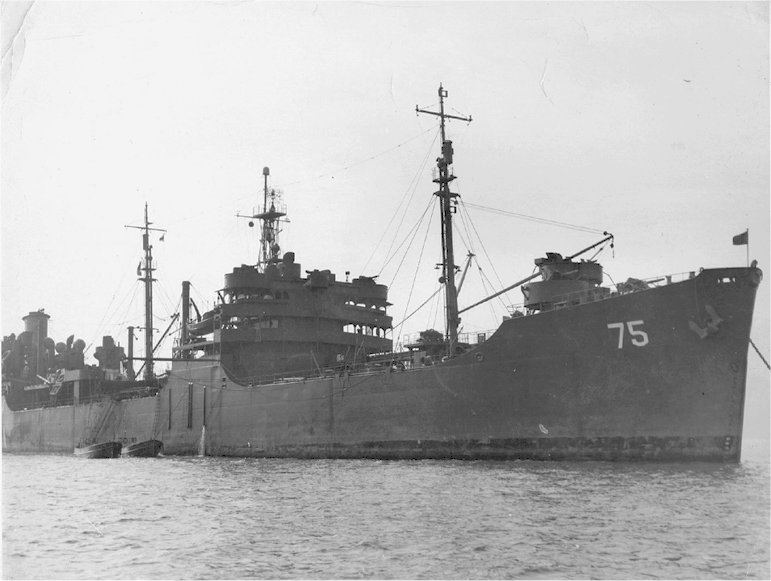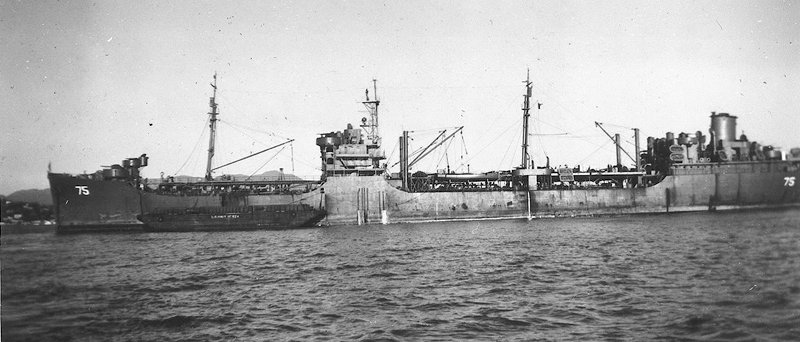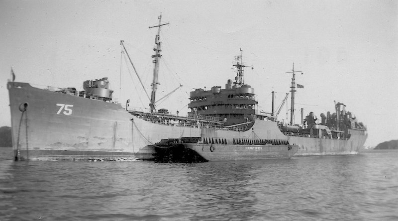 64k | Port broadside view of USS Saugatuck (AO-75) at anchor in San Francisco Bay, circa late-1945 early-1946. | John Chiquoine and Carmen Costa, courtesy Al DeSantis collection | |