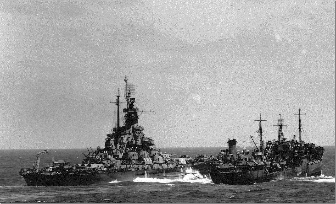 271k | USS Saugatuck (AO-75) refueling USS Massachusetts (BB-59) in mid-Pacific, 20 April 1945. Photo taken from USS Hornet (CV-12). | Pieter Bakels | |