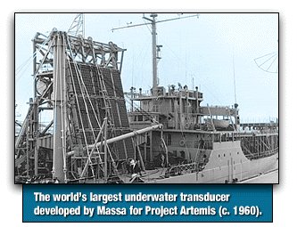 The ship is taking part in Project Artemis, an exploratory development effort to determine the feasibility of using the transducer in conjunction with high gain receivers in locating