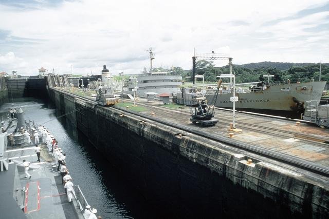 56k | USNS American Explorer (T-AOT-165) transiting the Panama Canal, date unknown.