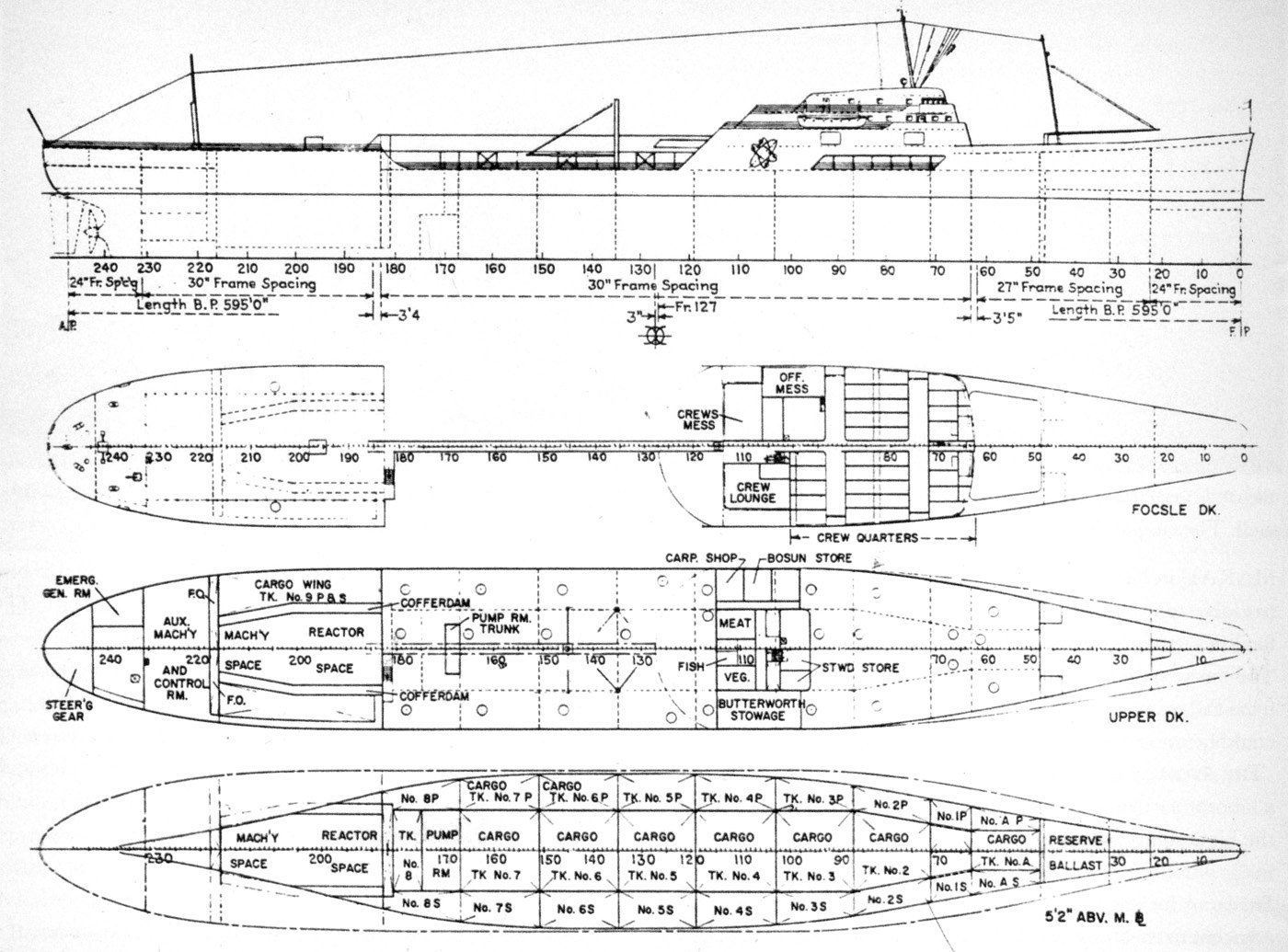 160k | NS American Explorer (MA hull 53). A preliminary George Sharp design for the nuclear powered 20-knot T5 tanker American Explorer that