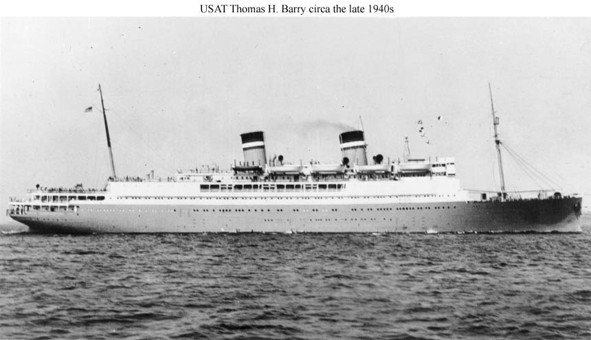 120k | USAT Thomas H. Barry between 1946 and 1950 during her postwar service as a transport for Army dependents. Photo courtesy Shipscribe.com. |