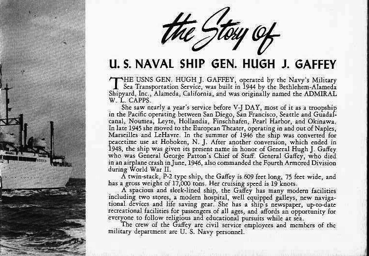 MSTS souvenir photo of USNS General Hugh J. Gaffey (T-AP-121) |