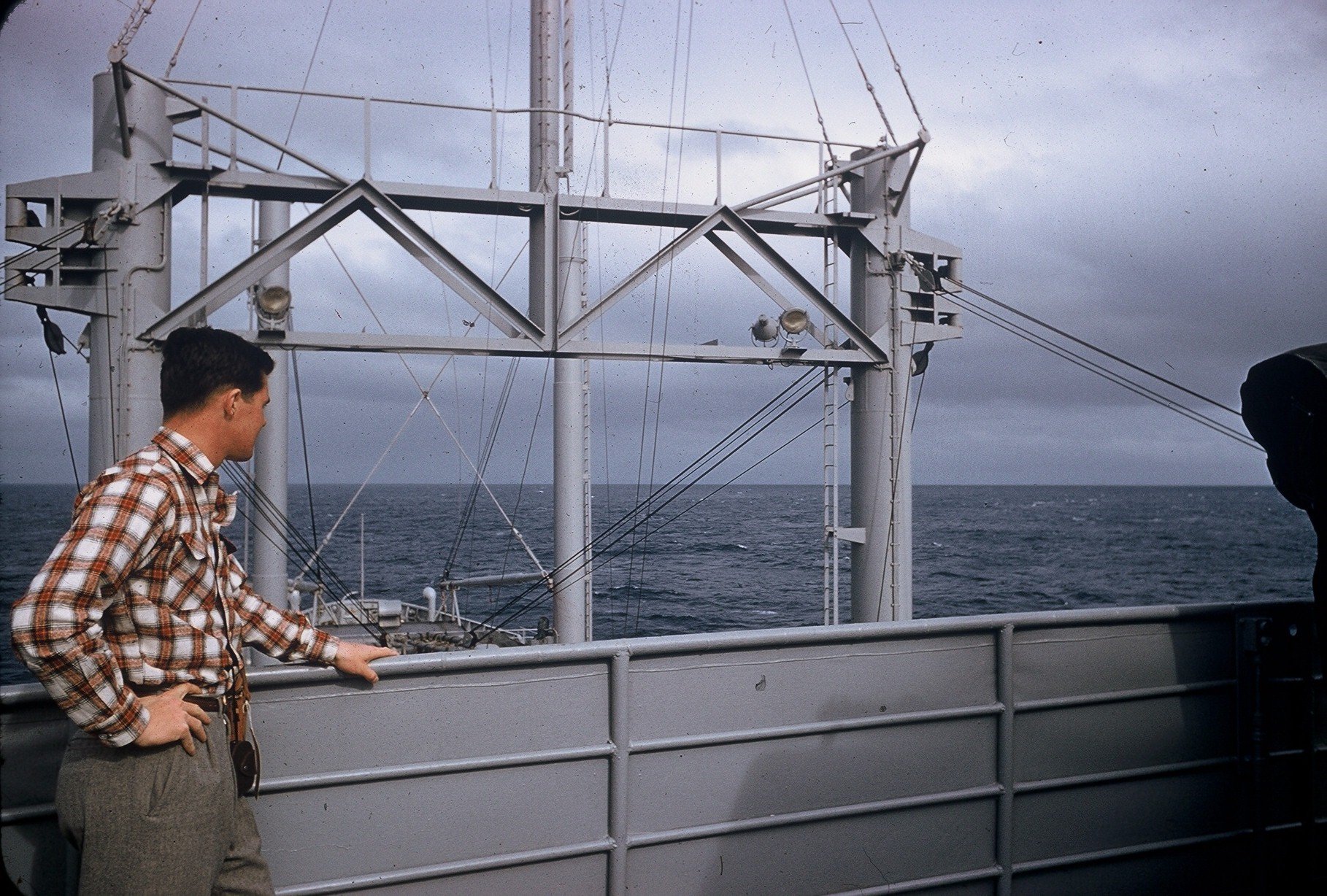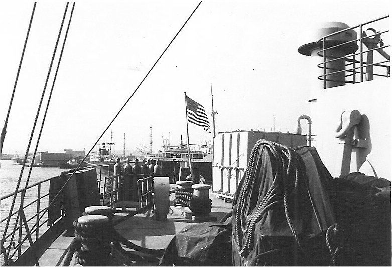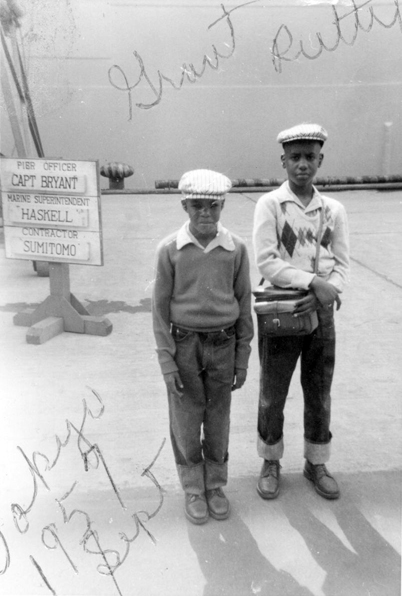 Russell and Fred Hayden on the dock at Tokyo, 1957 |