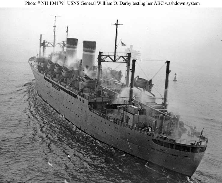 104k | USNS General William O. Darby (T-AP-127) under way, date and location unknown. US Navy photo |