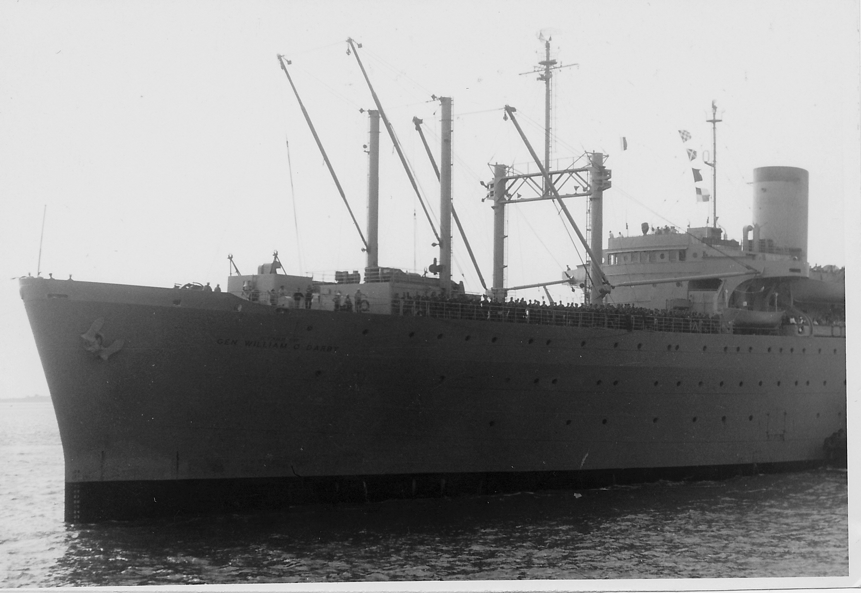 188k | USNS General William O. Darby (T-AP-127) under way in the early 1950s. Photo from a US Navy photo post card dated March 1953. | Tommy Trampp | |