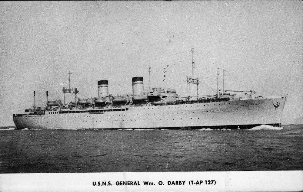 41k | USNS General William O. Darby (T-AP-127) under way, date and location unknown.